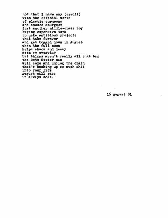 John Dorr, « Not that I have any (credit) », poème, 16 aout 1981