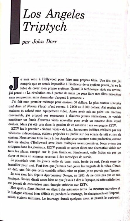 Renee Tajima, « EZTV Offers Off-Off Video in an LA Mall », The Independent, mars 1984, non paginé.