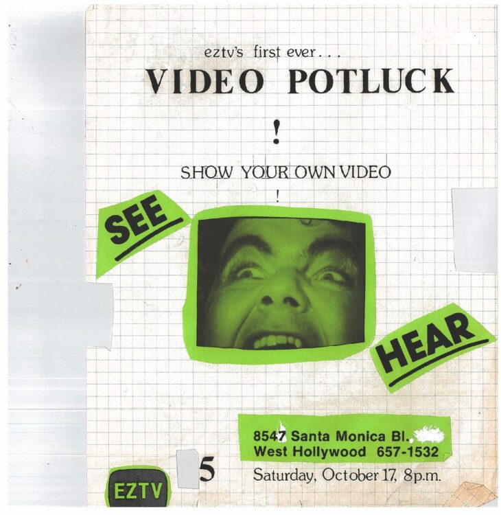Affiche pour une soirée de projection « Video Potluck » à EZTV, n.d.