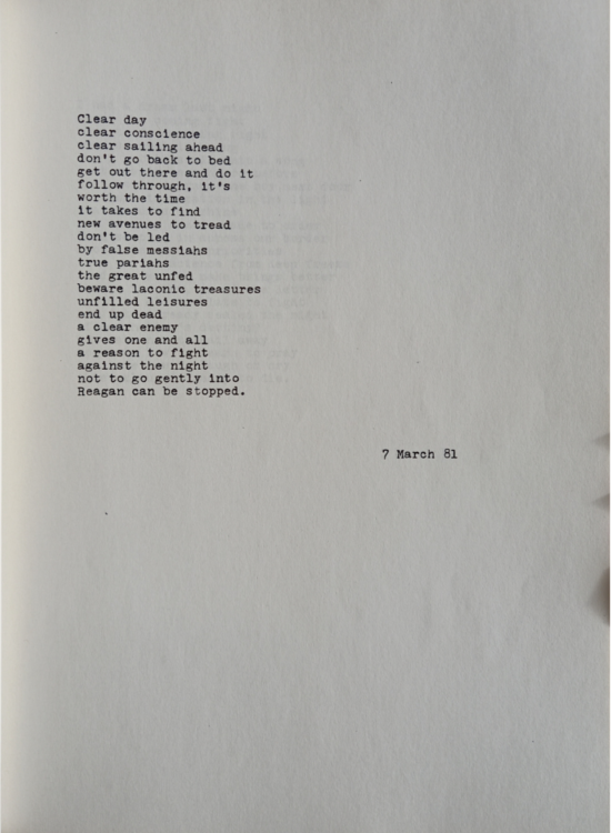 John Dorr « Clear Day », poème, 7 mars 1981, Archives personnelles de Strawn Bovee