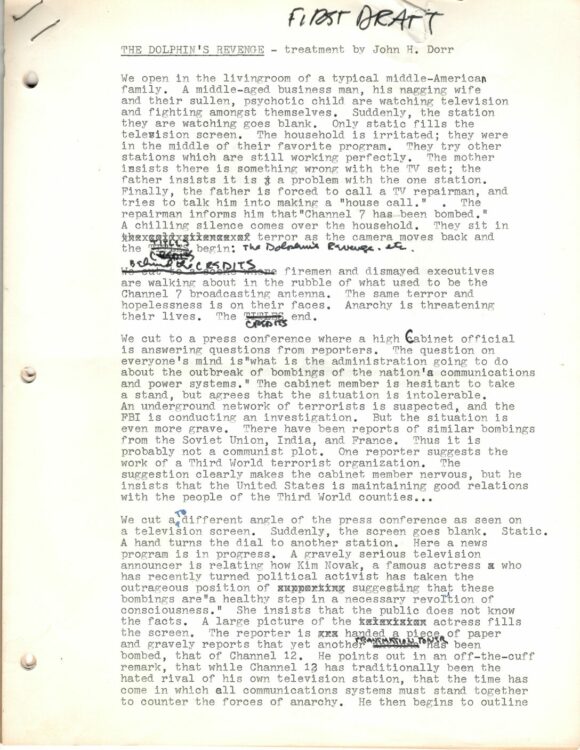 John Dorr, note pour un projet de film, The Dolphin’s Revenge, 1970