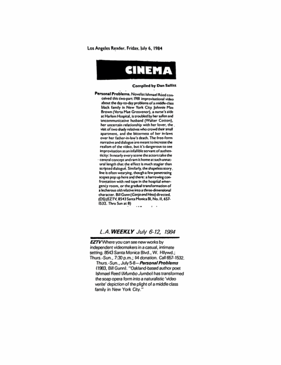 Ishmael Reed et Bill Gunn, Personnal Problems, dossier de presse, 1984