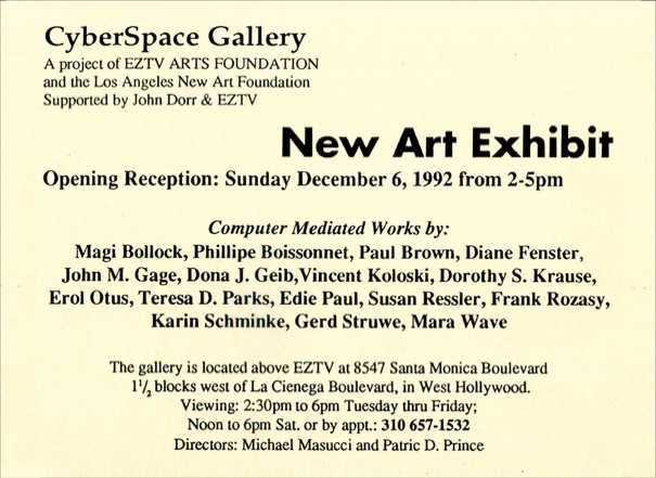 Announcement for exhibitions at CyberSpace Gallery – 1