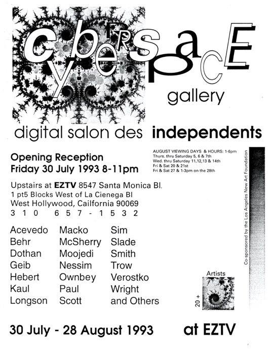 In addition to mainstream press, such as the LA Times and the LA Reader, professional publications in computer graphics covered CyberSpace gallery, pointing out that computer art was “still struggling for acceptance.”